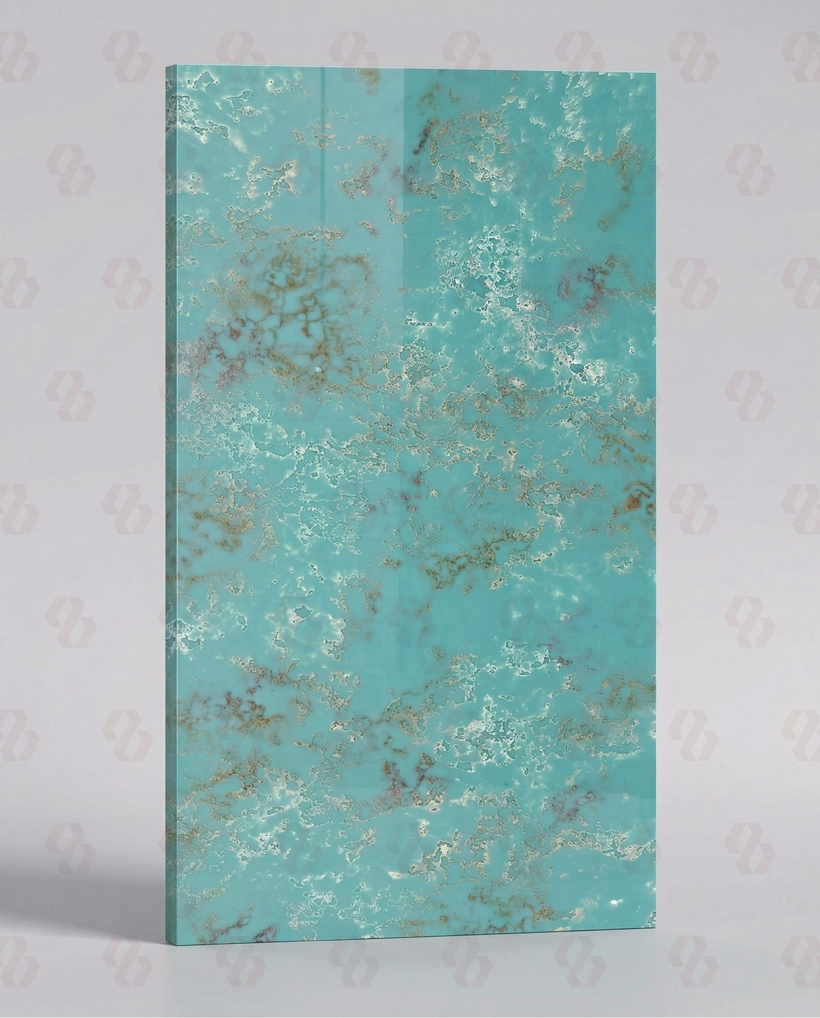Cristalloo Luxe Quartz (Ranger) is a sophisticated and visually captivating engineered quartz designed for contemporary luxury environments. Characterized by its serene aqua-blue background, shimmering crystal-cloud formations, and delicate champagne-gold fossil patterns, this surface delivers a calm yet luxurious aesthetic with exceptional depth and brightness.